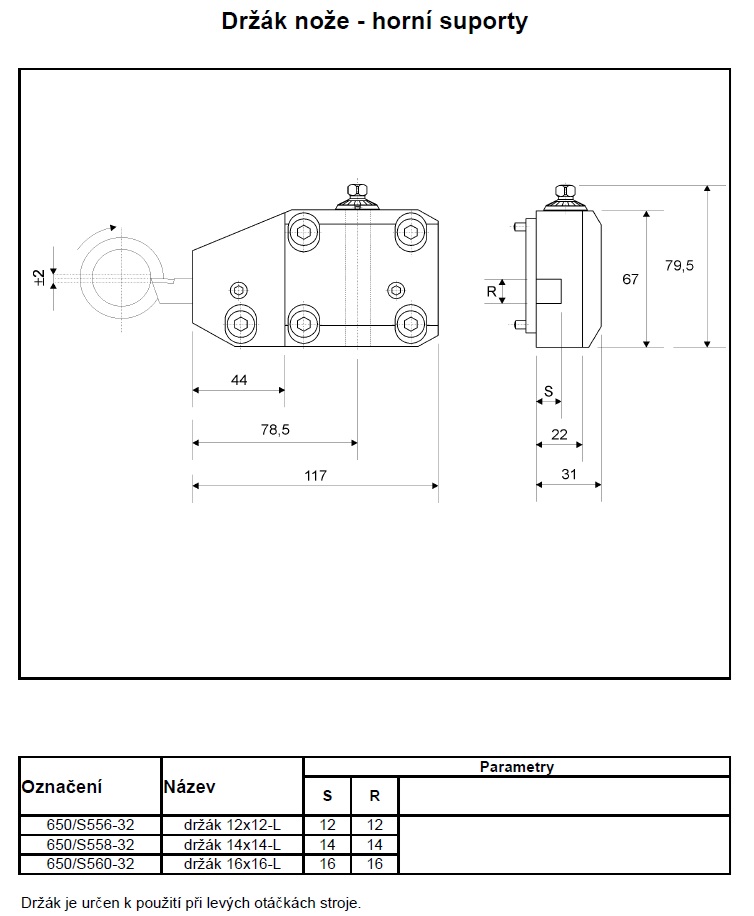 Držák nože - horní suport S568-32 COMPACT